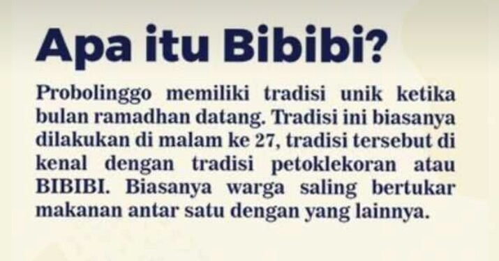 PROBOLINGGO, Suluk.id – Malam pitulikuran atau petoklekoran syarat akan tradisi yang kuat dari masyarakat Probolinggo. Yakni BIBIBI atau tradisi saling bertukar makanan.