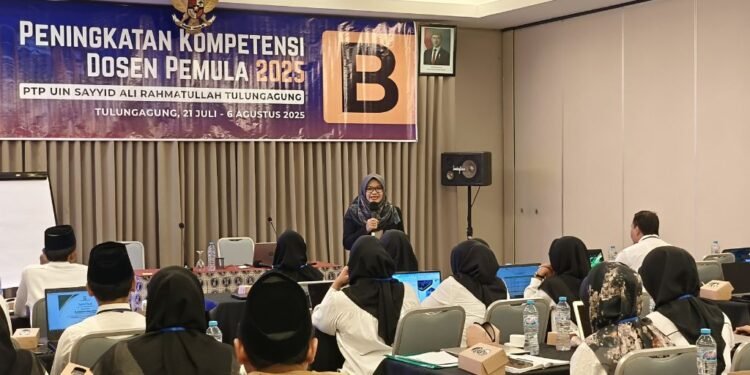 Suluk.id, Tulungagung, 24 Juli 2025 — Moderasi beragama kembali menjadi topik utama dalam pengembangan kapasitas dosen di lingkungan perguruan tinggi. Hal ini terlihat dalam penyelenggaraan Program Peningkatan Kompetensi Dosen Pemula (PKDP) yang dilaksanakan di Hotel Lojikka, Tulungagung, pada Kamis (24/07/2025). Dalam kegiatan tersebut, Dr. Luthfi Ulfa Ni’amah, M.Kom.I., selaku Koordinator Program Studi Komunikasi dan Penyiaran Islam UIN Sayyid Ali Rahmatullah Tulungagung, hadir sebagai narasumber utama dengan materi bertajuk “Moderasi Beragama di Lingkungan Kampus”.