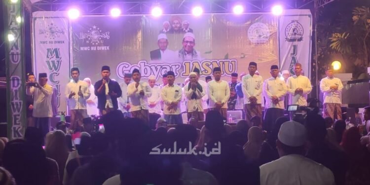 Suluk.id, Jombang – Ratusan jamaah memadati Masjid At-Taqwa Desa Jatirejo Kecamatan Diwek, Sabtu (6/9) malam. Mereka mengikuti Gebyar Jam’iyyah Sholawat Nahdlatul Ulama’ (JASNU). Kegiatan ini digelar Majelis Wakil Cabang Nahdlatul Ulama (MWCNU) Diwek bersama ranting NU, Banom dan Lembaga NU se-Kecamatan Diwek.