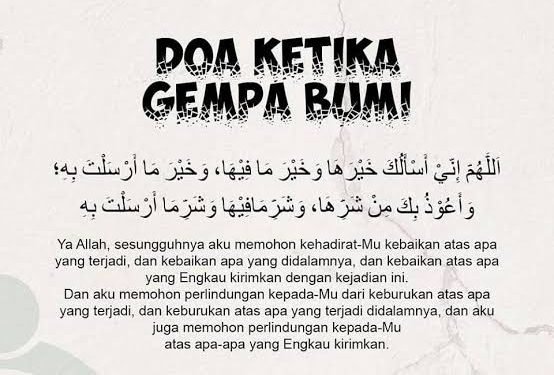 Sumber teks doa dari: https://islam.nu.or.id/post/read/84256/doa-ketika-terjadi-gempa-bumi