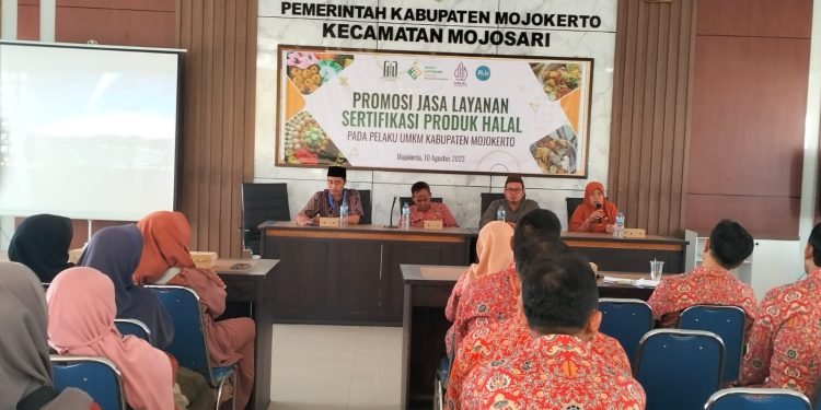 Mojokerto – UIN Sayid Ali Rahmatullah Tulungagung dan Kecamatan Mojosari Mojokerto Launching Rumah Halal pada (10/08/2023) dengan mengundang ratusan Pelaku Usaha Mikro Kecil di Kantor Kecamatan Mojosari, dalam kegiatan Sosialisasi dan Launching tersebut di hadiri oleh Dinas Perindustrian dan Perdagangan Kabupaten Mojokerto, Camat Mojosari, Ketua MUI Kecamatan Mojosari, Kepala Kantor Urusan Agama Mojosari serta Ketua Pusat Layanan Halal UIN Sayyid Ali Rahmatullah Tulungagung, seluruh Kepala Desa se Kecamatan Mojosari serta ratusan pelaku usaha yang tersebar di seluruh Kecamatan Mojokerto, mereka juga langsung mendaftarkan produknya untuk disertifikasi halal di Rumah Halal Kecamatan Mojosari.