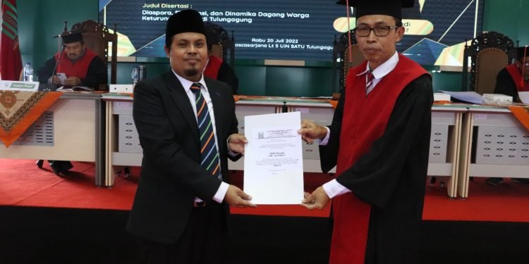 Meski mendapat banyak saran dan kritik, di hadapan dewan penguji Refki Rusyadi berhasil mempertahankan disertasinya yang berjudul “Diaspora Eksistensi, dan Dinamika Dagang Warga Keturunan Banjar di Tulungagung”. Acara ini disaksikan oleh kerabat dan rekan Refki mulai dari FEBI, keluarga besar UIN SATU, tetangga , keluarga, hingga perwakilan dari warga keturunan Banjar yang ada di Tulungagung.