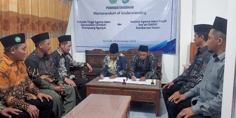Suluk.id, Nganjuk – Pimpinan Institut Agama Islam Faqih Asy’ari (IAIFA) Sumbersari Kencong Kepung Kediri menggelar studi tiru ke kampus Sekolah Tinggi Agama Islam Darussalam (STAIDA) Krempyang, Sabtu (29/11). Kegiatan yang dibungkus kunjungan silaturahmi ini untuk menambah wawasan pimpinan IAIFA Kediri terkait rencana mendirikan program pascasarjana.