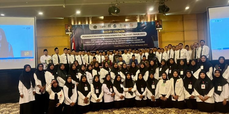 TULUNGAGUNG – UIN Sayyid Ali Rahmatullah Tulungagung terus berinovasi untuk meningkatkan kualitas dosen. Salah satunya dengan menyelenggarakan Short Course Peningkatan Kompetensi Dosen Pemula (PKDP) selama enam hari di hotel crown Tulungagung. Pelaksanaan dimulai Selasa-Minggu (15-20 Agustus 2023).
